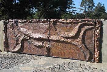 Jeff Warwick creates original and commissioned pieces, designing independently, or working with designers and architects. Warwick�s artworks are in copper, silver, steel, stone, precious stones, and glass. The artwork on this website has all been sold. Warwick creates new pieces for commissions and for gallery sales, and once in a great while, has a piece in inventory for sale. Call or email us regarding commissions and availability of new pieces.
